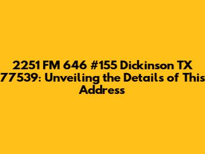 Hey guys! Let's dive into everything you need to know about 2251 FM 646 #155, Dickinson, TX 77539. This address might seem like just another set of numbers and letters, but there's a whole world of information we can uncover about it. Whether you're a potential buyer, a curious neighbor, or just doing some research, we've got you covered. So, let's get started and explore what makes this particular spot in Dickinson, Texas, so interesting!