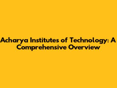 Acharya Institutes Of Technology: A Comprehensive Overview