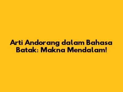 Hey guys, pernah denger kata "Andorang" dalam bahasa Batak? Mungkin buat sebagian dari kita yang nggak familiar sama bahasa Batak, kata ini terdengar asing banget ya. Tapi, percaya deh, "Andorang" ini punya makna yang dalam dan penting banget dalam budaya Batak. Yuk, kitaBedah lebih dalam apa sih sebenarnya arti "Andorang" itu dan kenapa kata ini begitu bermakna!