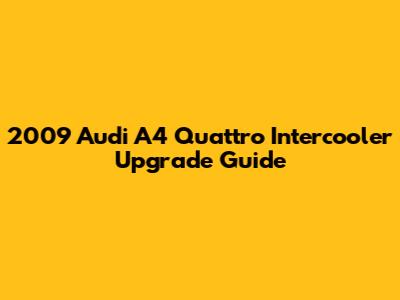 Let's dive into the world of intercoolers, specifically for the 2009 Audi A4 Quattro. If you're looking to boost your car's performance, upgrading your intercooler is a fantastic place to start. This guide will walk you through everything you need to know.