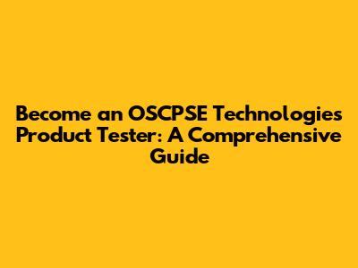 Become An OSCPSE Technologies Product Tester: A Comprehensive Guide