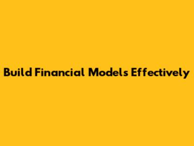 Build Financial Models Effectively