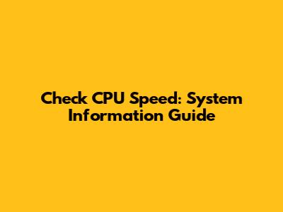 Check CPU Speed: System Information Guide