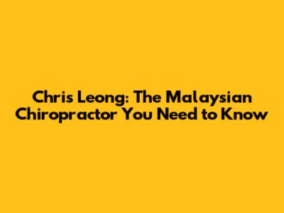 Who is Chris Leong? Unveiling the Master Chiropractor