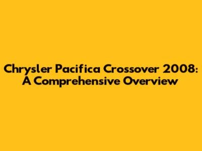 Chrysler Pacifica Crossover 2008: A Comprehensive Overview