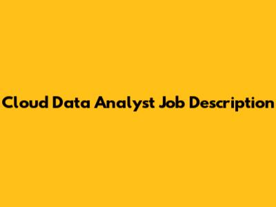 Cloud Data Analyst: Job Description & Skills