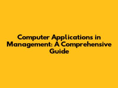 Computer Applications In Management: A Comprehensive Guide