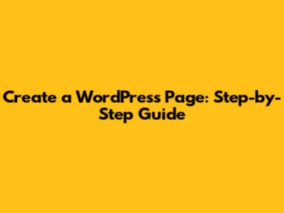 Create A WordPress Page: Step-by-Step Guide