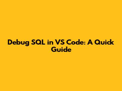 Debug SQL In VS Code: A Quick Guide