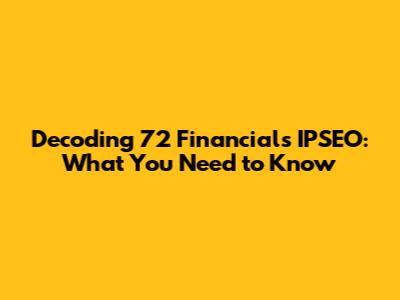 Decoding 72 Financial's IPSEO: What You Need To Know