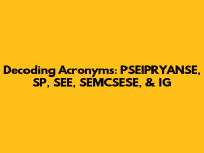 Decoding Acronyms: PSEIPRYANSE, SP, SEE, SEMCSESE, & IG