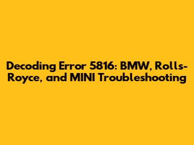 Decoding Error 5816: BMW, Rolls-Royce, And MINI Troubleshooting