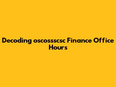 What Are oscossscsc Finance Office Hours?
