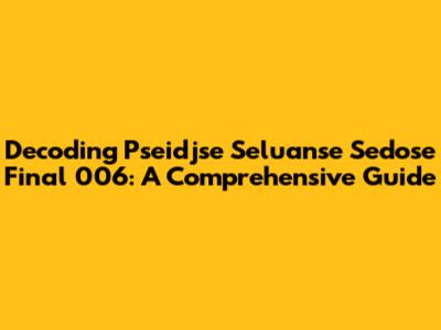 Decoding Pseidjse Seluanse Sedose Final 006: A Comprehensive Guide