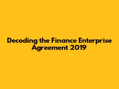 Decoding The Finance Enterprise Agreement 2019