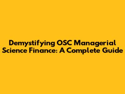 Demystifying OSC Managerial Science Finance: A Complete Guide