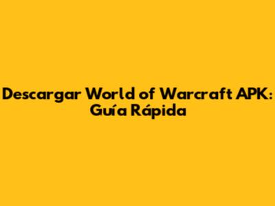 Descargar World Of Warcraft APK: Guía Rápida