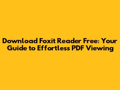 Download Foxit Reader Free: Your Guide To Effortless PDF Viewing