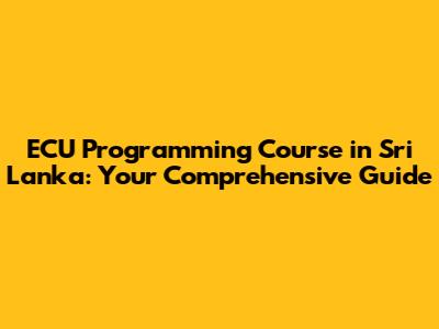 ECU Programming Course In Sri Lanka: Your Comprehensive Guide