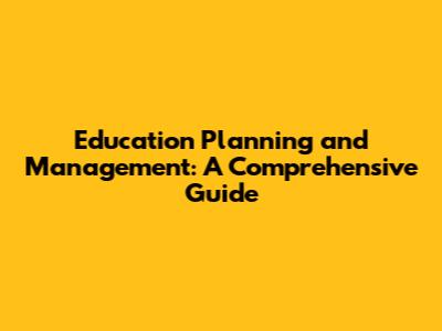 Education Planning And Management: A Comprehensive Guide