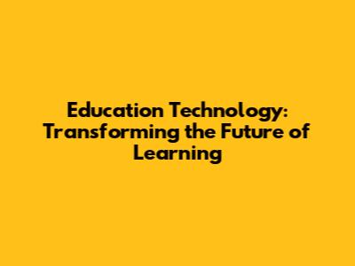 Education Technology: Transforming The Future Of Learning