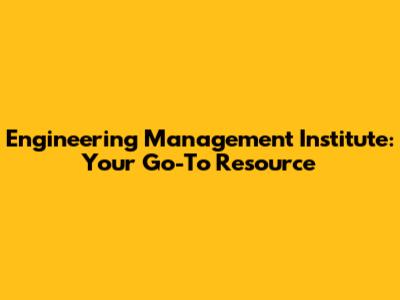 Engineering Management Institute: A Comprehensive Guide