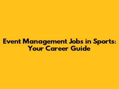 Event Management Jobs In Sports: Your Career Guide