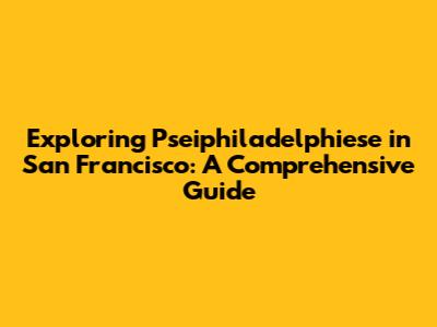 Hey guys! Ever heard of Pseiphiladelphiese? It's a fascinating concept, and if you're in San Francisco, you're in for a treat. This guide will dive deep into what it is, its significance in the city, and how you can experience it. Get ready to explore the hidden gems and unique aspects of San Francisco through this lens. Let's get started!