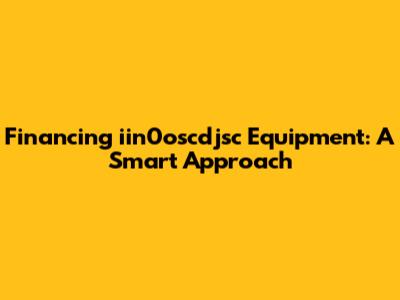 Financing Iin0oscdjsc Equipment: A Smart Approach