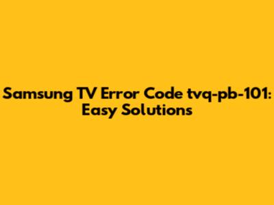 Fix Samsung TV Error Code Tvq-pb-101: Easy Solutions