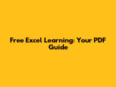 Free Excel Learning: Your PDF Guide