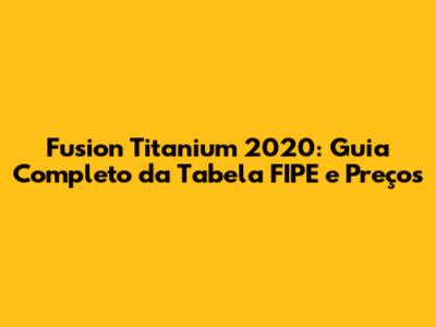 Fusion Titanium 2020: Guia Completo Da Tabela FIPE E Preços