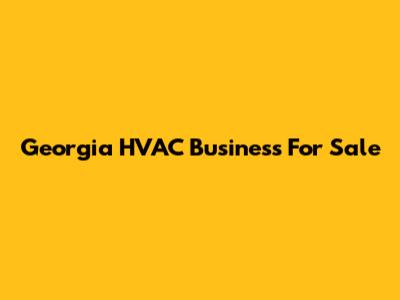 Georgia HVAC Business For Sale