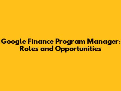 Google Finance Program Manager: Roles And Opportunities