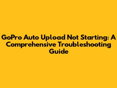 GoPro Auto Upload Problems? Troubleshooting Guide