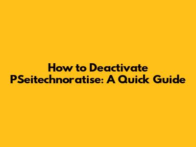 How To Deactivate PSeitechnoratise: A Quick Guide
