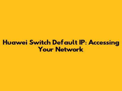 Huawei Switch Default IP: Accessing Your Network