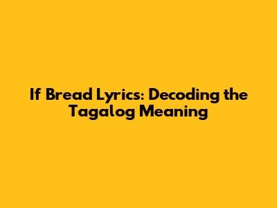 If Bread Lyrics: Unpacking The Meaning In Tagalog