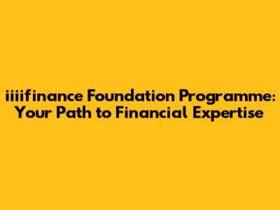 Iiiifinance Foundation Programme: Your Path To Financial Expertise