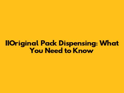 Understanding IIOriginal Pack Dispensing