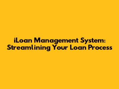 ILoan Management System: Streamlining Your Loan Process