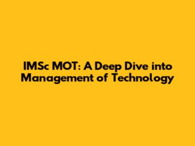 IMSc MOT: A Deep Dive Into Management Of Technology