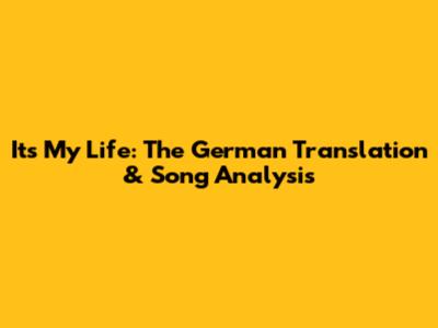 It's My Life: The German Translation & Song Analysis