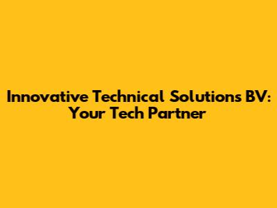 Hey guys! Ever heard of Innovative Technical Solutions BV? If you're in the market for some seriously cool tech solutions, you've come to the right place. Let's dive into what makes this company a standout player in the tech world.