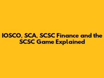 IOSCO, SCA, SCSC Finance And The SCSC Game Explained