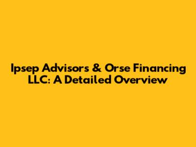 Ipsep Advisors & Orse Financing LLC: A Detailed Overview