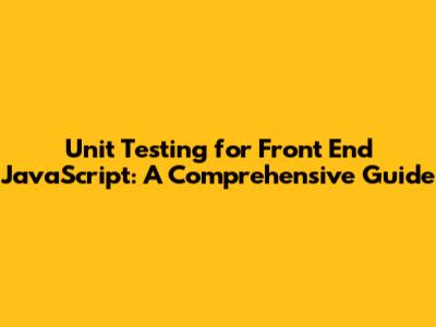 JavaScript Front End Unit Testing: A Comprehensive Guide