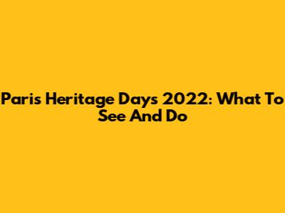 Paris Heritage Days 2022: What To See And Do