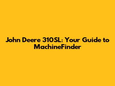 John Deere 310SL: Your Guide To MachineFinder