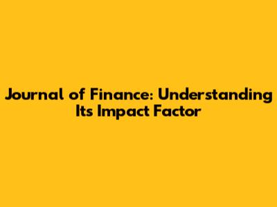 Journal Of Finance: Understanding Its Impact Factor